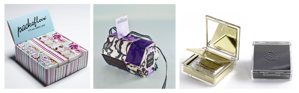 Na szczęście nie jest promowane podejście słodko różowe. Możemy wyróżnić naprawdę eleganckie, miłe dla oka formy, które zupełnie nie pozwalają na zdemaskowanie zawartości. Kolory dziewczęce: pastele, róż, fiolet, do tego koronki, kokardki, są to przyjemne akcenty, które mogą przełamać zakłopotanie towarzyszące zakupowi.