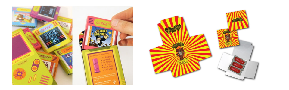 Producenci wykorzystują grę w skojarzenia zarówno słowną, jak i obrazkową. Prowokują dwuznacznymi hasłami, powodują uśmiech żartobliwymi. Kreatywnie wyróżnia się lider branżowy – Durex z wieloma ciekawymi odsłonami produktowymi.